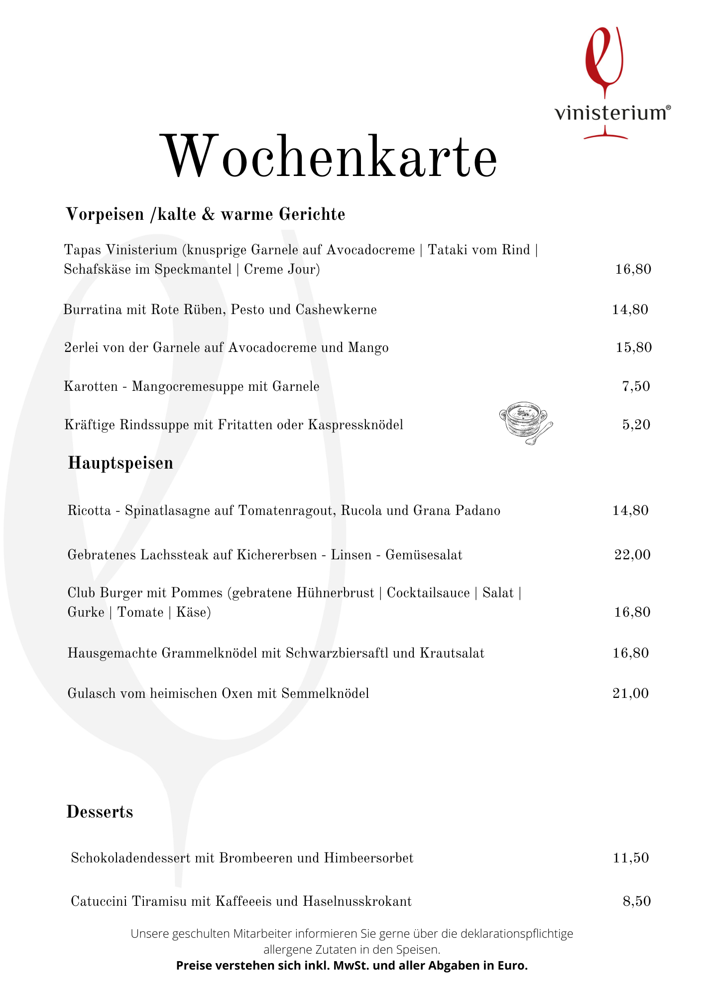 Euch erwartet eine erlesene Auswahl an feinen Tropfen, frisch gezapftes Bier und ein tolles Speiseangebot. Selbstverständlich gibt es auch noch die lieb gewonnen Antipasti-Platten und andere bereits bekannte Köstlichkeiten!