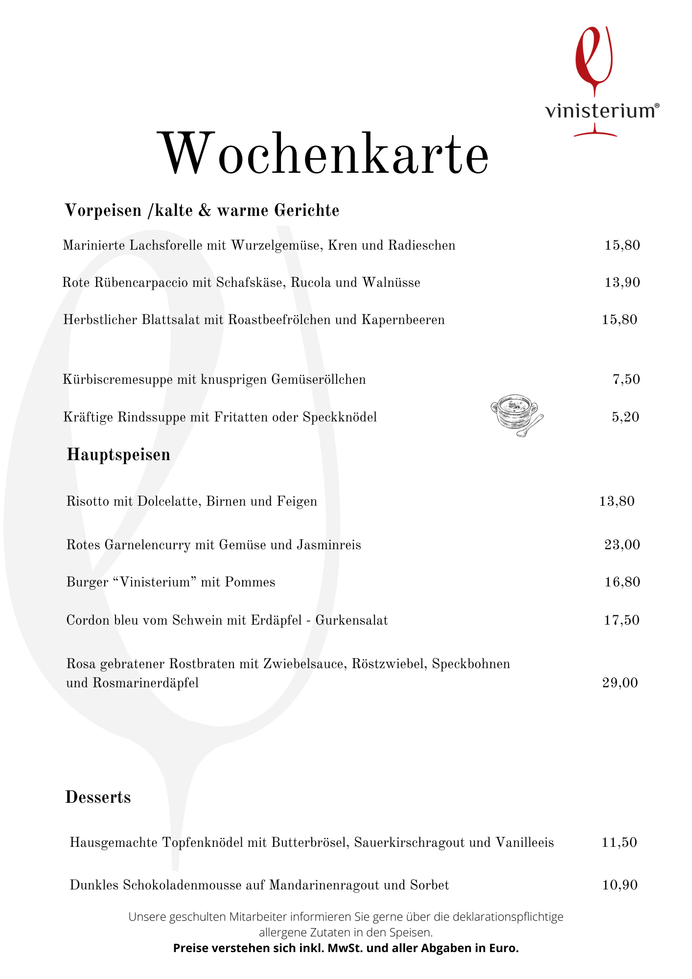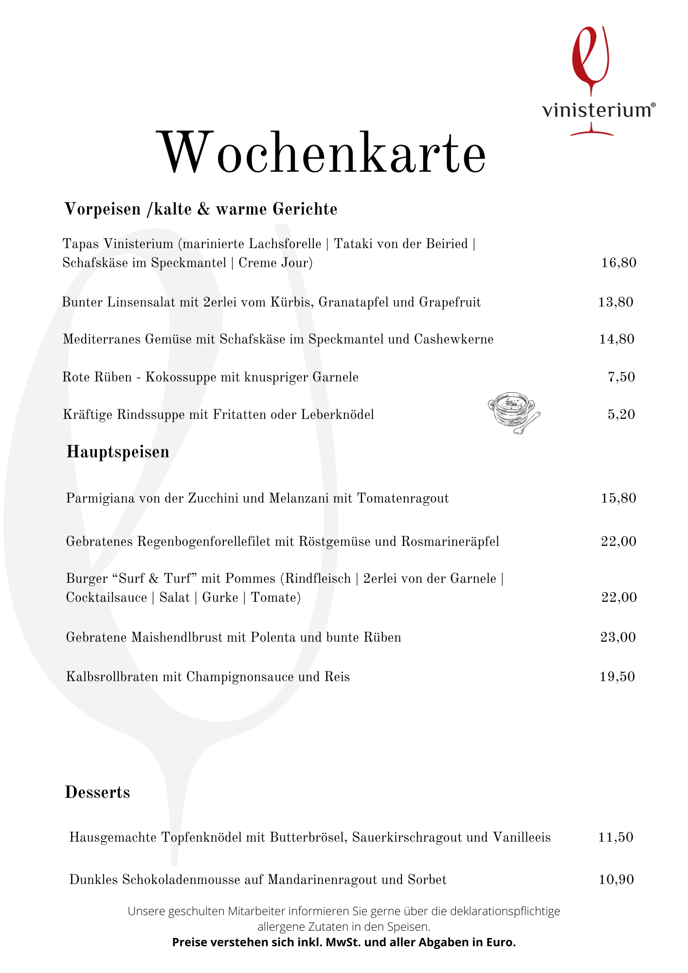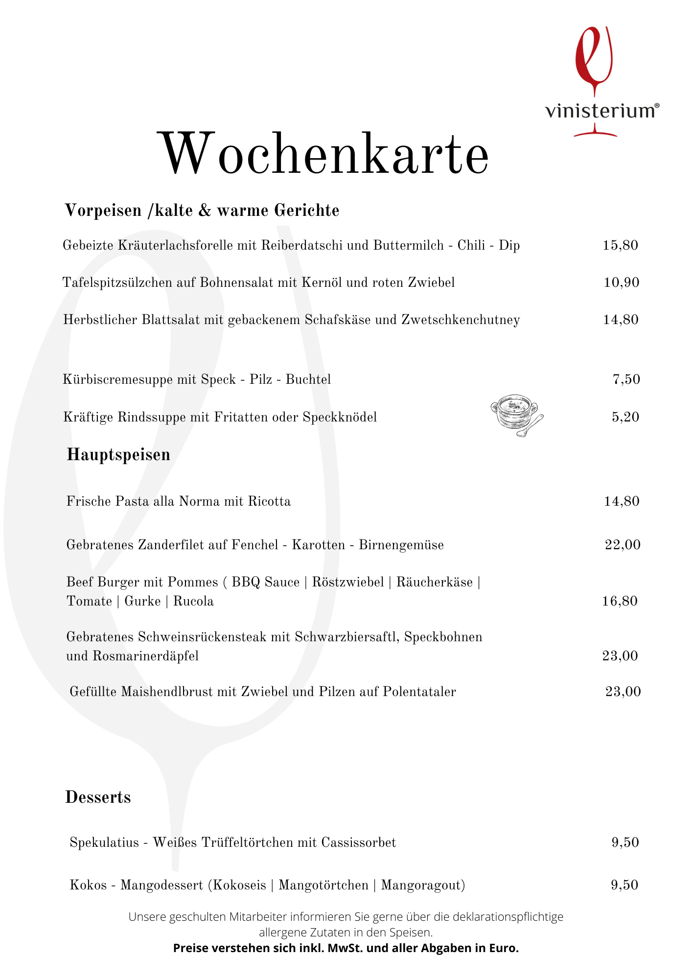 Euch erwartet eine erlesene Auswahl an feinen Tropfen, frisch gezapftes Bier und ein tolles Speiseangebot. Selbstverständlich gibt es auch noch die lieb gewonnen Antipasti-Platten und andere bereits bekannte Köstlichkeiten!